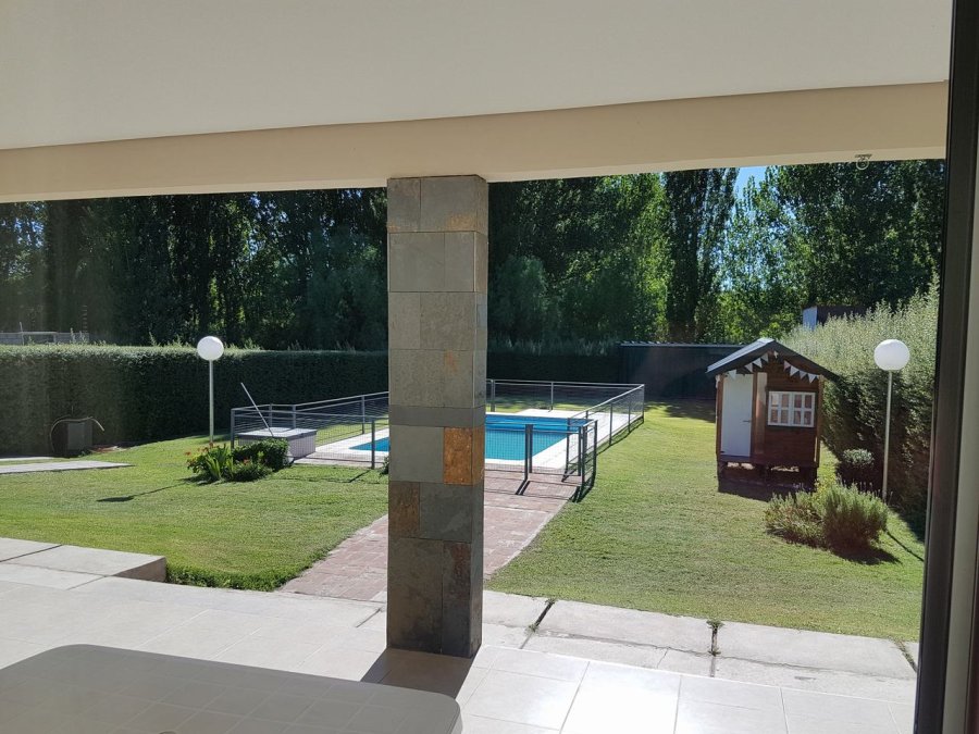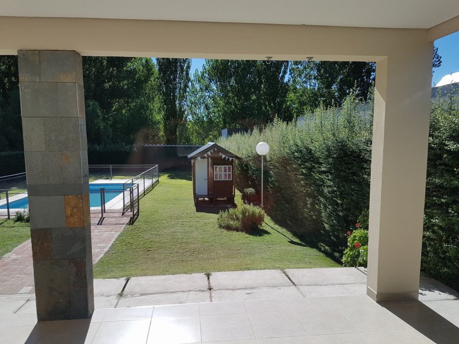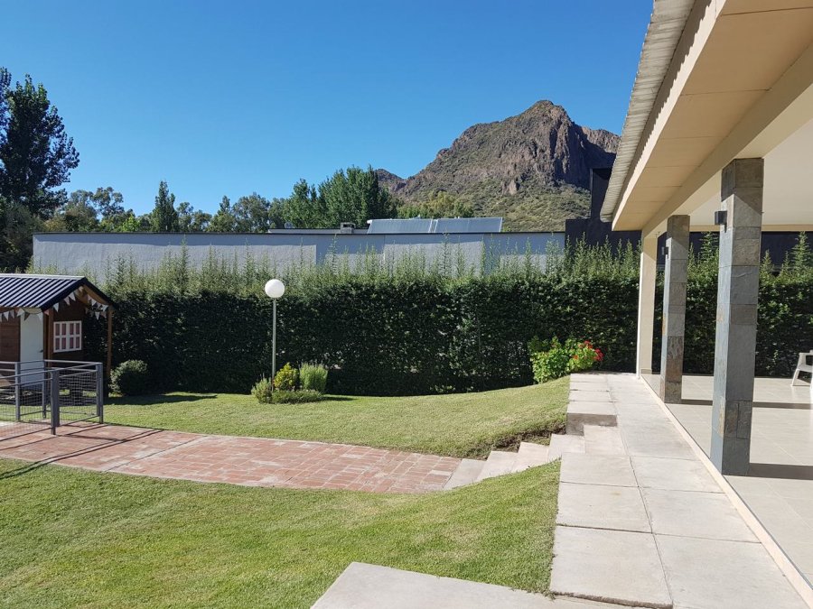 La casa dispone de las siguientes comodidades para asegurarle una cómoda estadía: es una casa de 170 metros cuadrados con un terreno de 1100 metros delimitado por grataegus, posee: living comedor cocina, tres dormitorios, un baño repartido en tres partes, ante baño, baño y zona de duchas con yacusi, despensa, baño exterior completo y galería cubierta en donde se encuentra la churrasquera con vista a la piscina, casita de niños y garaje cubierto. Al costado norte rodea una pérgola, para dejar tres vehículos. Ubicada a sólo 17 kilómetros de la ciudad de San Rafael, dentro del Complejo Solar del Valle, Barrio privado, en el corazón del paraje denominado Valle Grande, posee una vegetación de moreras, se puede disfrutar de un bosque de Eucaliptus, y un paseo a orillas del Rio, el cual se encuentra dentro del complejo, con rosales de diferentes colores, lugar extraordinario para disfrutar de las montañas, rio y vegetación. También cuenta con una cancha de futbol, Todo ello hace que el turista se sienta en un verdadero lugar de descanso y libre, sin inconvenientes para los niños que pueden disfrutar de paseos en bicicleta, caminatas y juegos con libertad, sin rejas, pero con cámaras de seguridad , -No obstante a pocos kilómetros encuentra lugares para realizar tracking, escalada, rafting, canope ,cabalgatas , y travesías en altura , entre otras actividades al aire libre.-Lugar perfecto para disfrutar la naturaleza el canto de los pájaros, los aromas del lugar.-