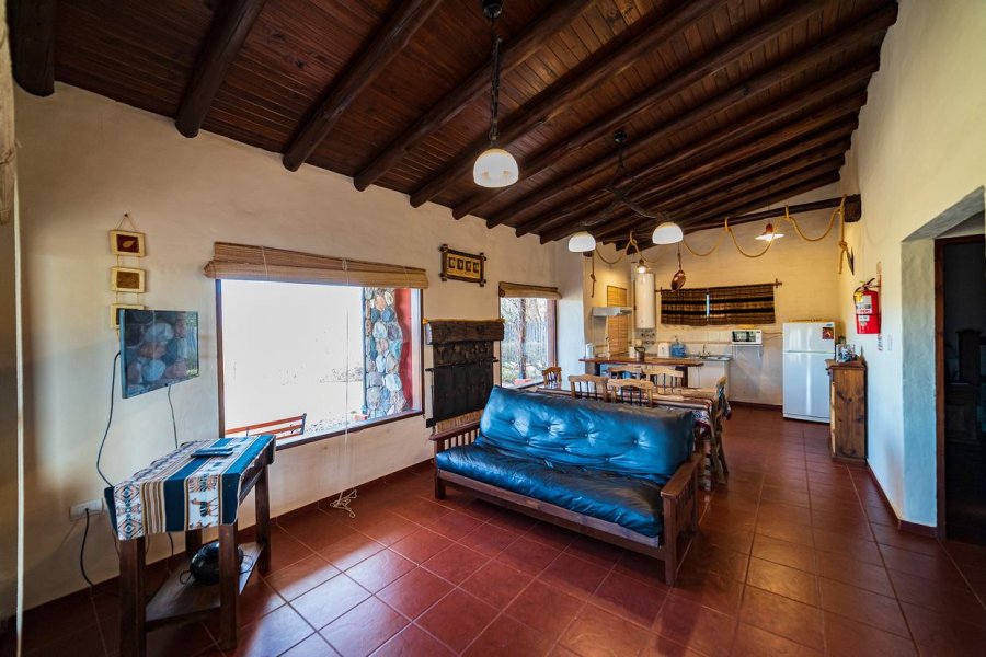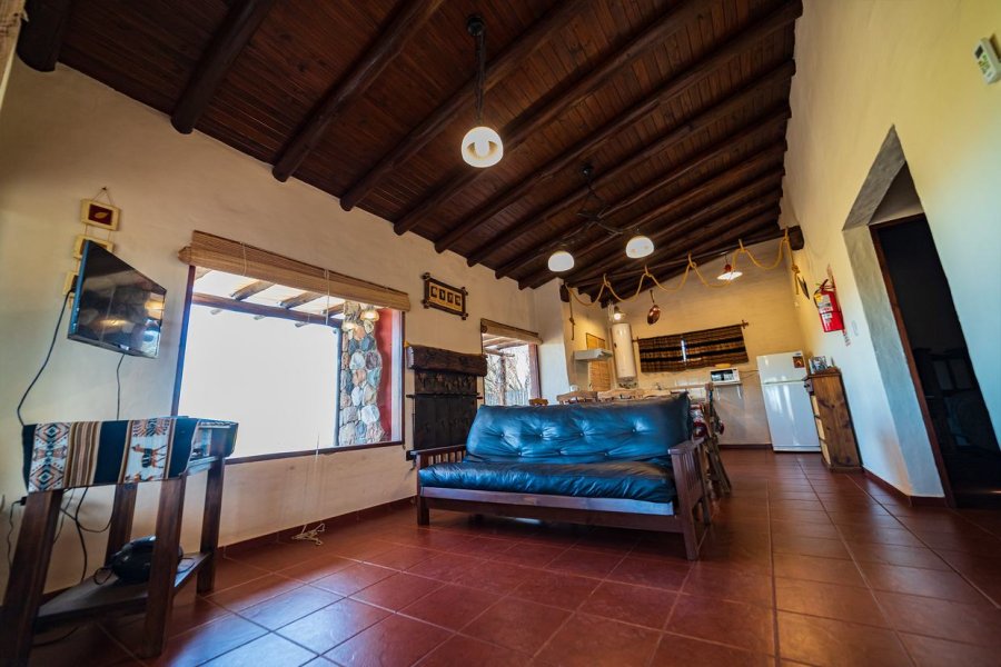 Villa Santa Clara del Atuel está enclavada en un predio de siete hectáreas, rodeado por las típicas jarillas cuyanas y el impetuoso río Atuel, que nos ofrece 200 mts de verdes costas para disfrutar de su belleza y frescura. Si busca naturaleza, silencio y por sobre todo privacidad, Villa sta Clara es el lugar. Las Cabañas se encuentran en la zona más alta del predio, con vista de 180° al cordón montañoso de la Sierra Pintada. Siete cabañas de 65 mts cuadrados cada una con patio privado con asador y su PISCINA INDIVIDUAL de 7 x 4 mts. x 1,5 mts. de profundidad. Cuenta con dos habitaciones, una matrimonial y otra con 3 camas, baño con ante baño y hogas a leña.